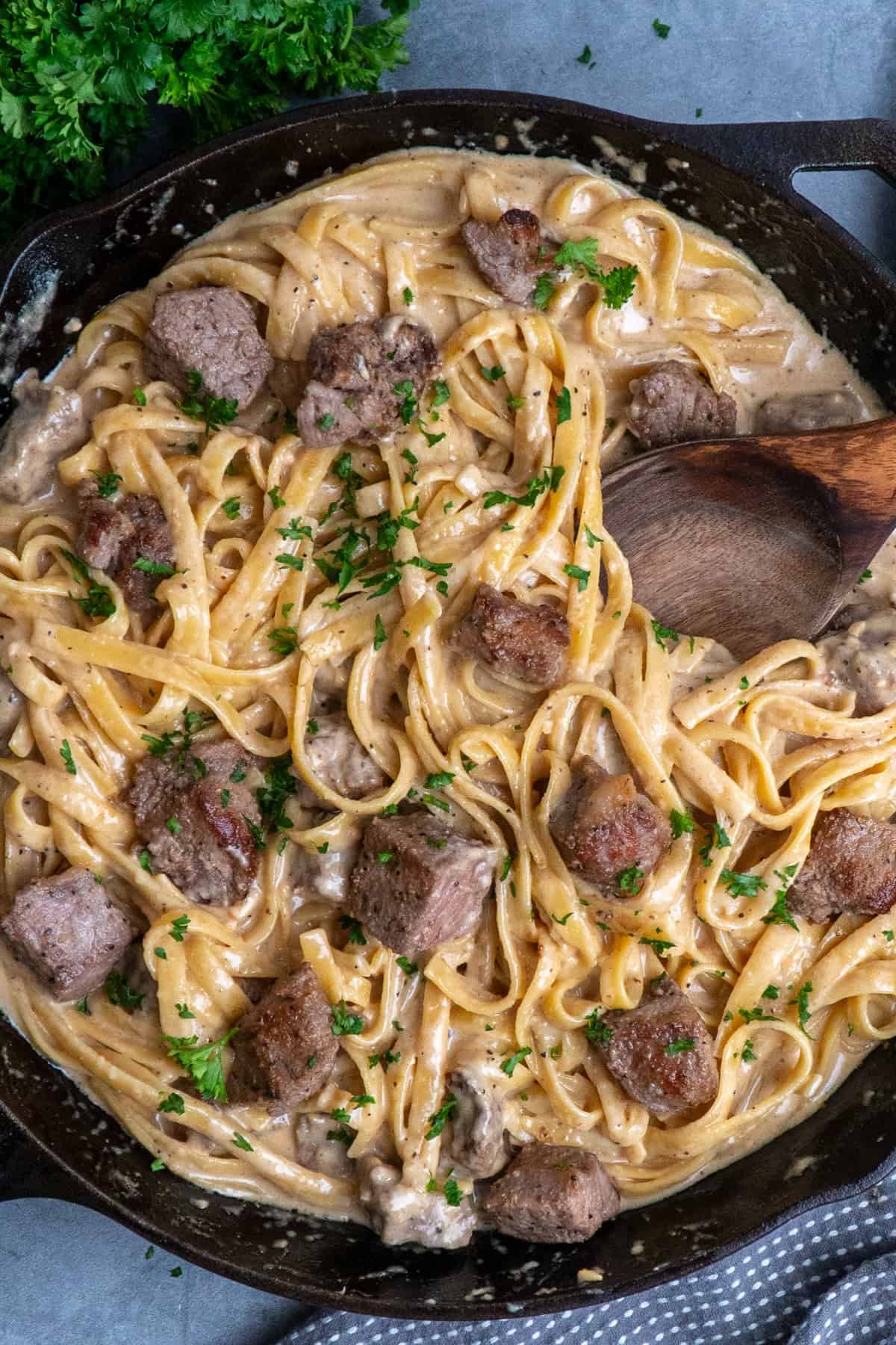It's also perfect to serve this steak fettuccine alfredo on date night with a nice glass of white wine and a green salad. alfredo sauce is always a winner for its silky parmesan based sauce, topped with steak, you've got one rich and filling meal.