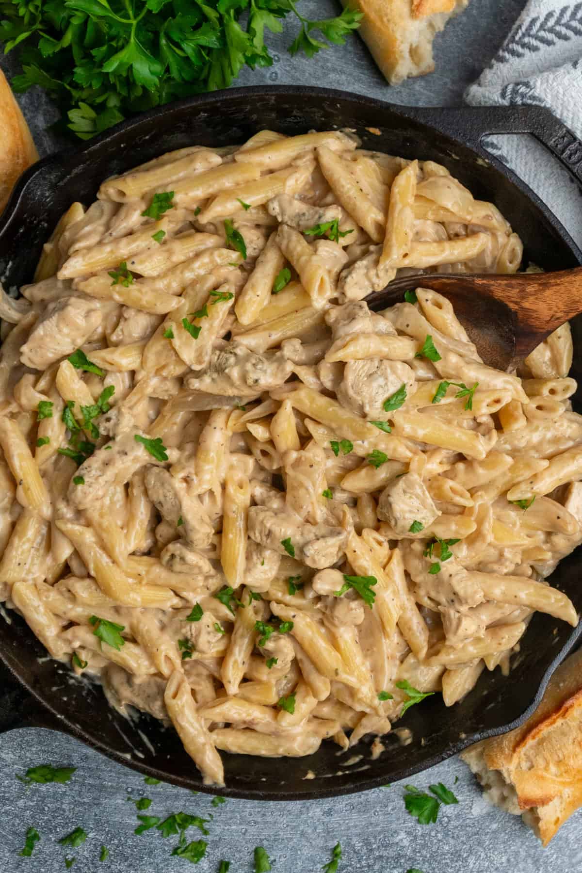 - Step 5: Combine Everything. Return the chicken to the skillet and add the cooked pasta. Toss everything together and let it simmer for 2-3 minutes so the flavors meld. Serve hot with some fresh Dutch oven bread.